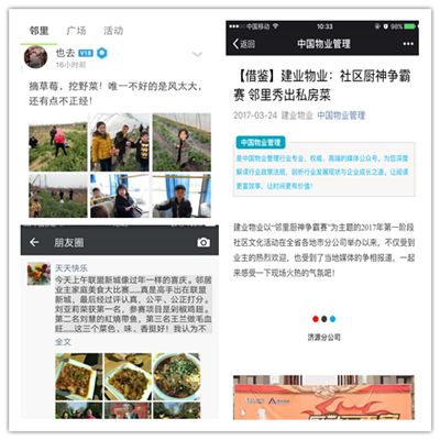 濟源、三門峽等分公司與當地房管局、電臺、晨報、項目公司緊密配合,舉辦大型廚神爭霸賽、元旦喜樂會等活動,吸引了中國物協(xié)等社會媒體的廣泛關注,并取得了良好效果。漯河、平頂山、洛陽等分公司充分利用建業(yè)一家APP、微信、直播平臺等載體,實現線上線下的充分互動,更是贏得了業(yè)主的一致好評。插花、葫蘆絲、樂器、乒乓球、書法協(xié)會等社群組織的持續(xù)運營和活躍,倡導并引領了業(yè)主的新型生活理念。