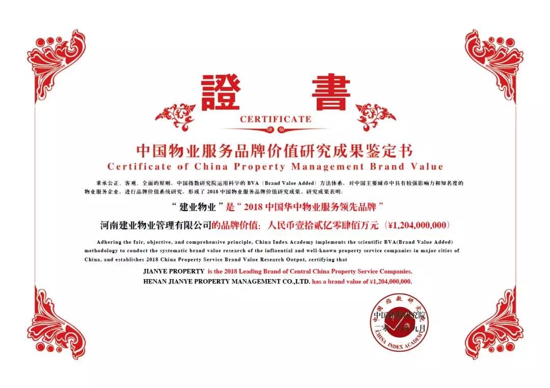 2018年,在中國(guó)物業(yè)服務(wù)百?gòu)?qiáng)企業(yè)研究中,建業(yè)物業(yè)躍居物業(yè)百?gòu)?qiáng)企業(yè)15強(qiáng)。此次榮膺“2018中國(guó)華中物業(yè)服務(wù)領(lǐng)先品牌”,再次體現(xiàn)了專業(yè)領(lǐng)域?qū)τ诮I(yè)物業(yè)的認(rèn)可。建業(yè)物業(yè)將繼續(xù)以優(yōu)質(zhì)服務(wù)提升業(yè)主生活幸福感,打造新型生活方式,為河南人民提供更好的人居環(huán)境,持續(xù)引領(lǐng)河南人居服務(wù)新高度。