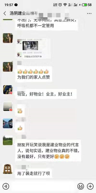 看著朋友圈、業(yè)主群的點(diǎn)贊以及業(yè)主當(dāng)面的表揚(yáng)與叮囑,奮斗在一線的建業(yè)物業(yè)人倍感溫暖,也更加充滿力量了。