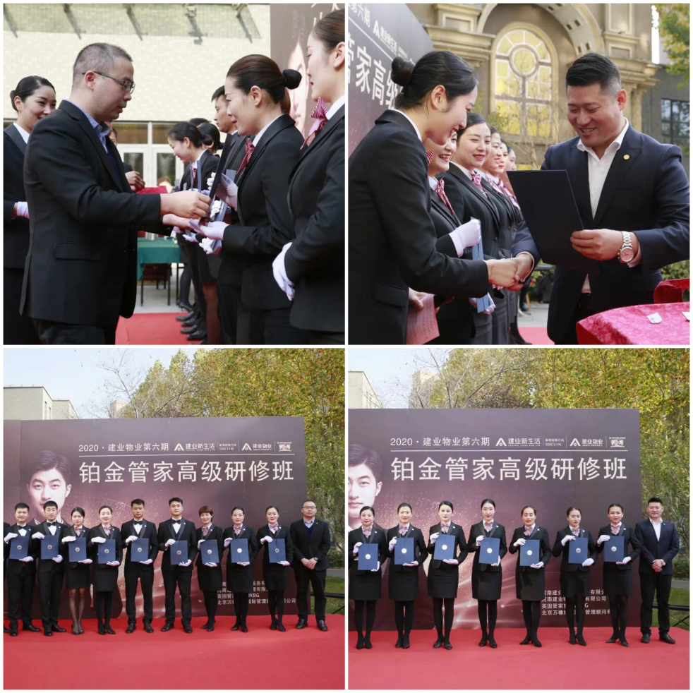 鉑金管家·郭佳歡:“我在2017年加入咱們建業(yè)物業(yè)的大家庭,在管家服務方法和技巧以及物業(yè)管理等方面,有了更深一層的了解,工作之中曾經(jīng)遇到的疑問,在各位老師的講授之中都深受啟發(fā)。未來,我將結合工作實際,更新服務理念,改變方法,靈活運作,相較于以前,更為自己腳下的路找準了基石與方向?!便K金管家·趙一帆“經(jīng)過10天的培訓,我對鉑金管家有了全新認知。在學習過程中,我努力將國際化服務標準與實際工作相聯(lián)系,不斷突破、創(chuàng)新?,F(xiàn)在的我,非常期待能在接下來的工作中大展拳腳?!?nbsp;鉑金管家周慧雨:“身為一名案場經(jīng)理,在此次的培訓中,我認識到英式管家的服務精髓,也深刻領略到英式管家的風范。接下來,我將繼續(xù)鞏固并實踐培訓內容,將具有皇家風范的禮儀高標準,帶到自己的工作中,為建業(yè)物業(yè)增添光彩。