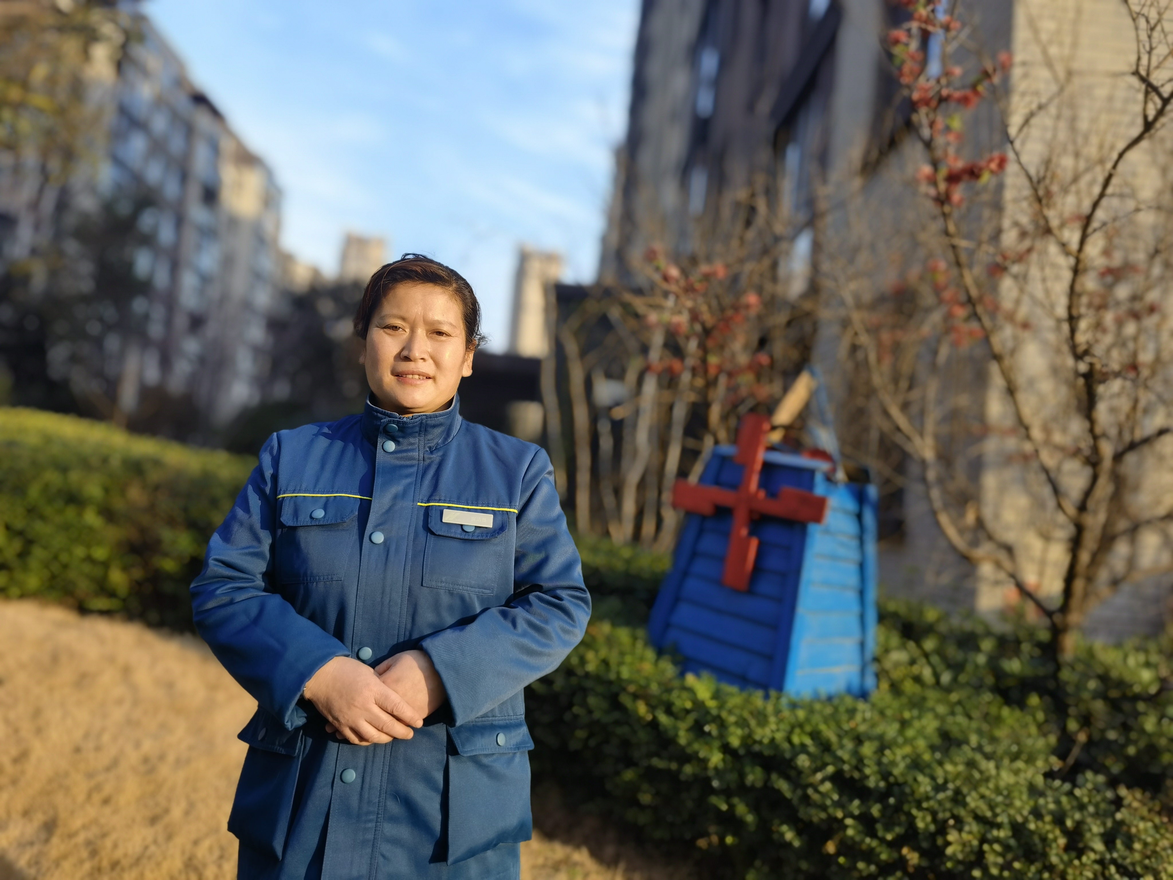這位保潔員名叫張鳳勤,家不在本地,因?yàn)橐咔槎x擇了就地過年。小區(qū)很多保潔員都是本地人,有時需要休假走親訪友,張鳳琴便主動承擔(dān)更多的責(zé)任,每天早早到崗,雖然樓棟多了,但并沒有因?yàn)槿蝿?wù)量大而敷衍,依舊有條不紊地工作。
