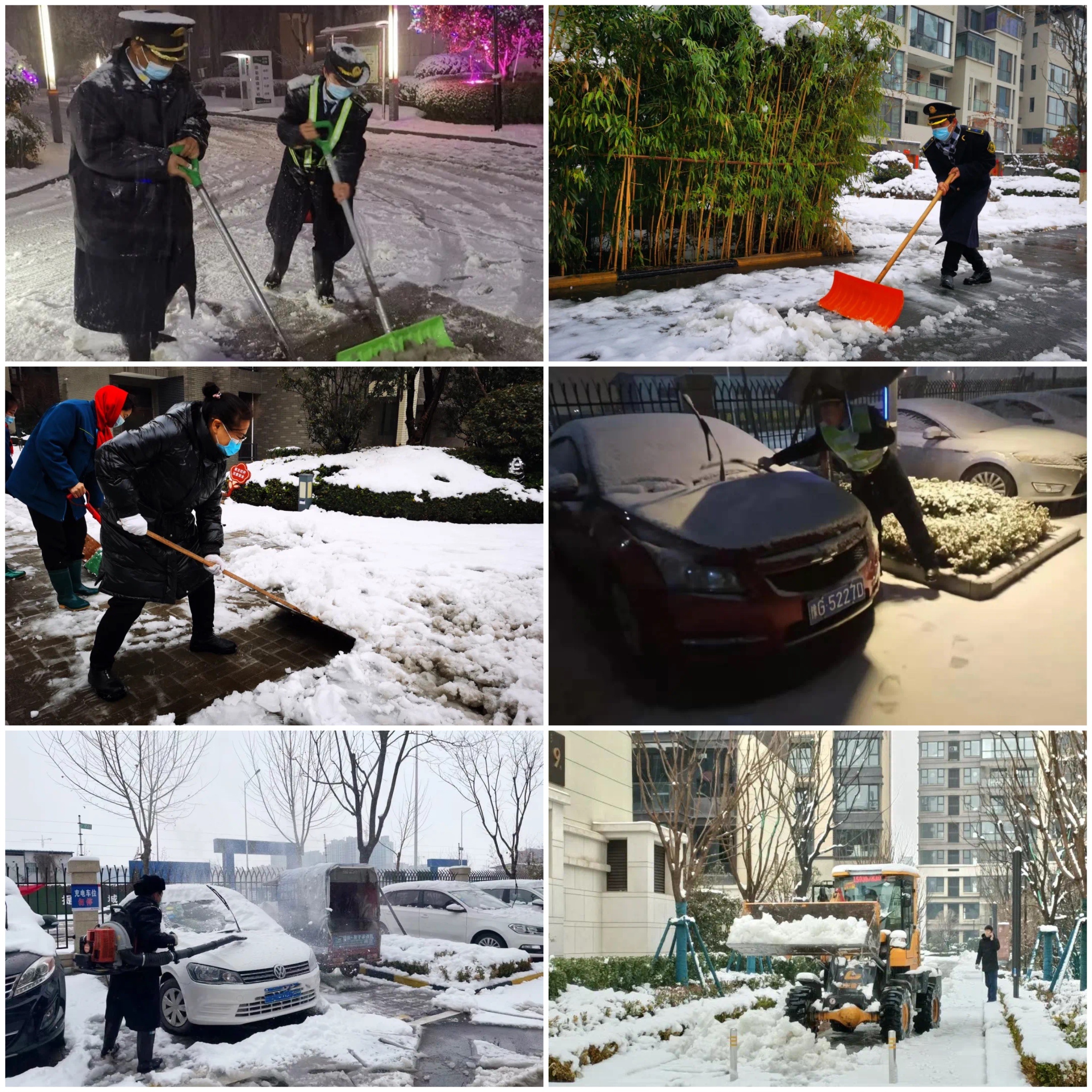 雪落的時候,不少業(yè)主帶著孩子到樓下玩雪嬉戲,建業(yè)物業(yè)人便守護(hù)在身旁;擔(dān)心業(yè)主夜晚出行,大雪還在下的時候,建業(yè)物業(yè)人便開始清雪,遇到晚歸的業(yè)主,或是俯身清理車前的積雪或是遞上一把傘;擔(dān)心大雪壓彎樹枝而破壞業(yè)主車輛,建業(yè)物業(yè)組建小分隊清理樹枝積雪,并且將車輛雨刮器打開,進(jìn)行臨時保護(hù);建業(yè)物業(yè)人清理完道路便幫業(yè)主清理車輛上的積雪,確保業(yè)主第二天能正常上班出行……