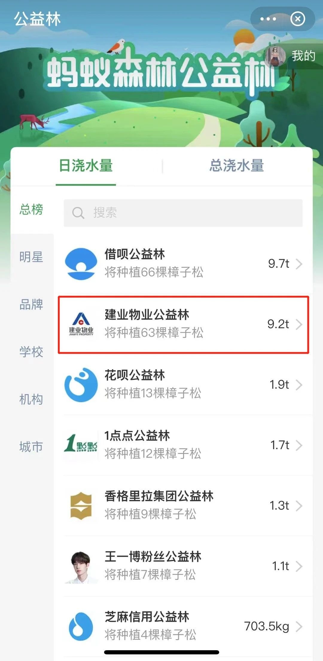 支付寶【螞蟻森林】建業(yè)物業(yè)公益林低碳打榜賽活動(dòng)雖已結(jié)束,但業(yè)主的熱情依然不減,在日常生活中踐行低碳的生活方式,并持續(xù)為建業(yè)物業(yè)公益林澆水,為公益事業(yè)貢獻(xiàn)力量。