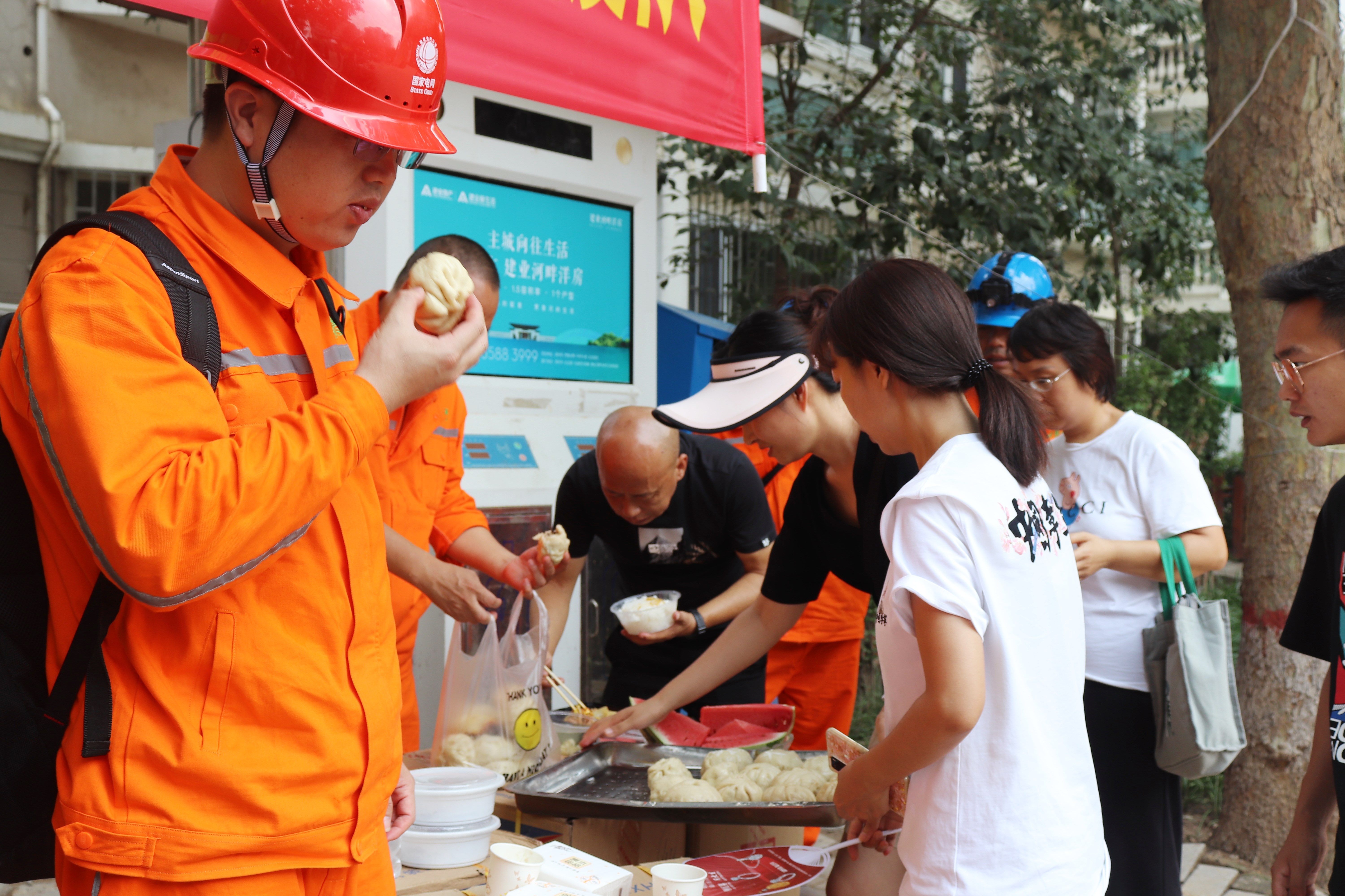 一名從江西贛州奔赴城市花園的國網(wǎng)救援人員說:“來到鄭州后,我每天都被感動著,總是想起魏巍的那篇《誰是最可愛的人》。”說完這句話,他有些哽咽,指著眼前的那些人繼續(xù)說:“這個小區(qū)受災(zāi)很嚴重,但是小區(qū)的物業(yè)和業(yè)主們卻很勇敢。物業(yè)還請來他們建業(yè)大食堂流動餐車來做飯,讓受災(zāi)群眾和救援人員無后顧之憂,不僅如此,他們也很專業(yè),救援隊的需求,只要一提出他們就能立刻解決,其實他們也一直沒休息……”
