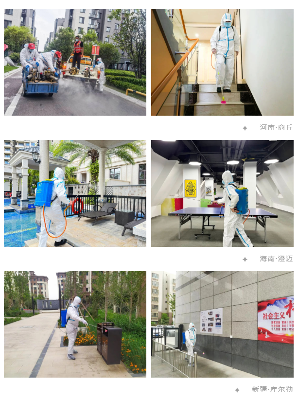 正值夏季,全國各地氣溫居高不下,但建業(yè)物業(yè)人仍舊穿著密不透風(fēng)的防護服對園區(qū)各處進行全方位的科學(xué)消殺,對公共環(huán)境、電梯、垃圾箱健身設(shè)施等不同區(qū)域使用不同的消毒設(shè)施和消毒液,科學(xué)深入地消毒,不留一處死角,全面保障業(yè)主公共區(qū)域的安全。