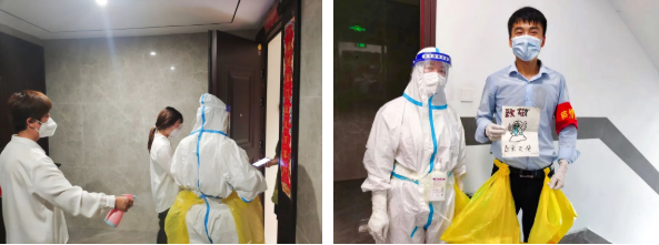 他們有人每天一大早就開始布置核酸檢測現(xiàn)場;有人全程協(xié)助醫(yī)護人員組織業(yè)主安全有序地檢測;有人馬不停蹄地給業(yè)主送米送菜;有人背著沉重的藥桶走遍園區(qū)的每一個角落;有人每天打近百個電話協(xié)調(diào)物資……