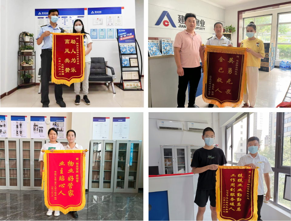 8月份,建業(yè)物業(yè)在管項目共涌現(xiàn)出好人好事1414件,其中收到錦旗264面,感謝信155封,其他致電表揚等984次。