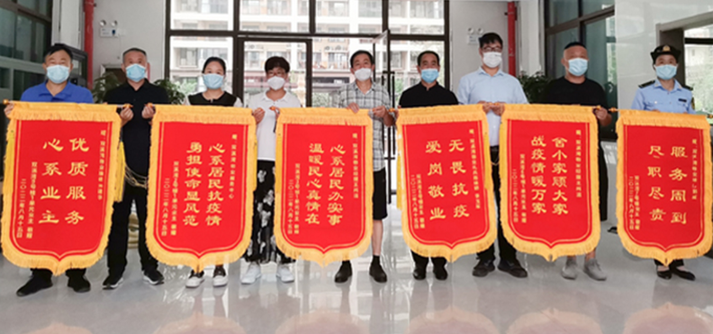 在小區(qū)物業(yè)和業(yè)主的共同努力下,民權(quán)·雙溪灣做到了“零感染、零密接”,迎來了解封時刻。兩天后,民權(quán)·雙溪灣物業(yè)服務(wù)中心收到了業(yè)主自發(fā)送來的六面錦旗,他們以此表達對所有物業(yè)工作人員的認可和感謝。