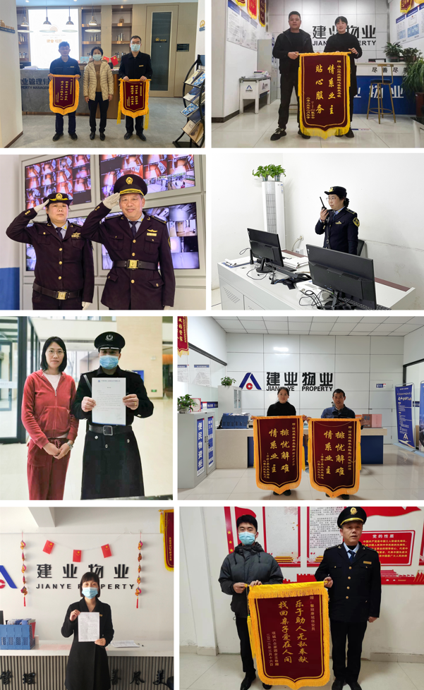 3月份,建業(yè)物業(yè)在管園區(qū)涌現(xiàn)出好人好事882件,其中收到錦旗210面、感謝信101封、其他致電表揚等571次。
