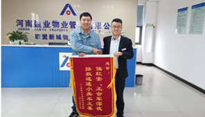 六月,艷陽如火,蟬鳴如潮。建業(yè)物業(yè)人滿懷如火的熱情,用服務(wù)為業(yè)主送來絲絲舒暢。六月份全省在管小區(qū)涌現(xiàn)出好人好事共計(jì)284例,其中收到錦旗65面,表揚(yáng)信127封,來電感謝及其他92例。 鏡頭一: 6月2日9時(shí)許,平頂山·十八城貼心管家王明濤接到7號(hào)樓尹女士的緊急電話,稱自己的丈夫腿受傷已無法動(dòng)彈,等不及救護(hù)車過來了。王明濤和禮兵中隊(duì)長白洋洋、巡邏禮兵安東火速趕到業(yè)主家中,一邊保護(hù)王先生腿部不再受到二度傷害,一邊將王先生背下樓并送往醫(yī)院。因就診及時(shí),病人病情得到及時(shí)控制,并無大礙。 次日,尹女士特地讓孩子代表夫婦二人送來一面印有“智慧果敢加神速,為業(yè)主排憂解難”字樣的錦旗,以此表達(dá)對(duì)建業(yè)物業(yè)的感激之情。 鏡頭二