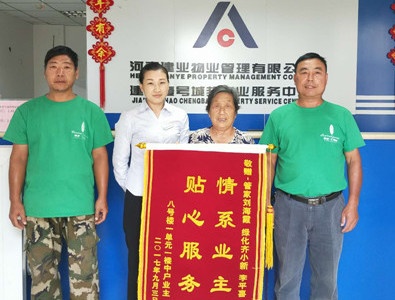 暮秋9月,秋風(fēng)送爽,平凡的物業(yè)人,在自己的崗位上至真至誠(chéng)地服務(wù)著每一位業(yè)主。在建業(yè)物業(yè)所服務(wù)的社區(qū)里,涌現(xiàn)出一件件感人至深的好人好事,溫暖著社區(qū)的每一位業(yè)主9月,我們收到拾金不昧、助人為樂(lè)、技術(shù)高超、心系業(yè)主、服務(wù)熱情等好人好事54例,其中,錦旗21面、感謝信14封、致電致謝18例。 鏡頭一: 9月2日下午6點(diǎn)左右,濟(jì)源·壹號(hào)城邦保潔張素玲打掃衛(wèi)生間時(shí),在拐角處撿到一只錢(qián)包,錢(qián)包內(nèi)有身份證、駕駛證、教師證重要證件,并有現(xiàn)金若干。她毫不猶豫地上交錢(qián)包,并在管家和維修工的協(xié)助下,通過(guò)證件找到失主,將錢(qián)包歸還,還婉言謝絕了業(yè)主的現(xiàn)金酬謝。 第二天,閆先生拿著一面錦旗來(lái)到物業(yè)辦公室,以此感謝張素玲保潔員拾金不昧的行為,對(duì)建業(yè)物業(yè)表達(dá)認(rèn)可! 鏡頭二: 9月2日